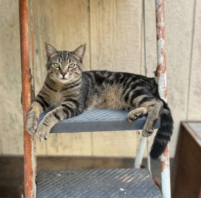 Moose is the spokescat of Evermore Ranch, though he has never needed words to prove his worth. A phenomenal mouser and constant presence, Moose has earned permanent sponsorship through instinct, consistency, and an uncanny sense of exactly where he is needed.