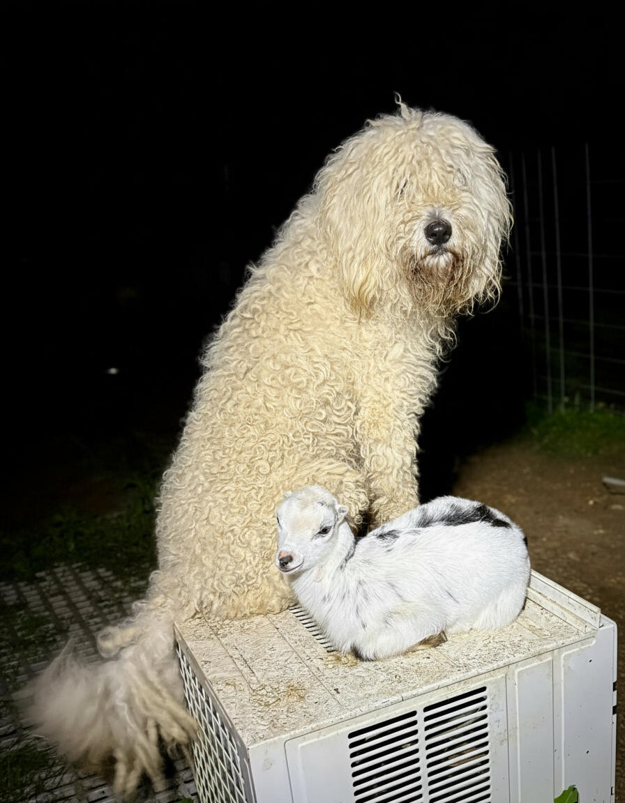 Our guardian dogs live and work full-time with the land, the herd, and the people who tend them. Their presence is steady and deliberate — protection offered without noise, authority held without force.Most of our guardians are Komondor and Great Pyrenees blends of varied lineage, chosen not for uniformity but for instinct, discernment, and the ability to think independently while remaining deeply bonded to their work.They are not pets, and they are not on display. They are partners shaped by seasons, routine, and trust — reading the dark as easily as the daylight, holding quiet boundaries through long nights, and carrying a kind of wisdom that only comes from time spent watching while others sleep.